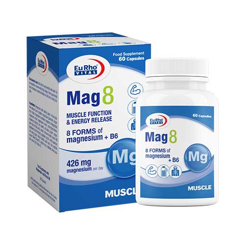 کپسول مگ 8 یوروویتال حاوی 8 ملح مختلف منیزیم (بیسگلایسینات، سیترات، مالات، لاکتات، تائورات، اکساید، گلوکونات و آسکوربات) بههمراه ویتامین B6 است که به تقویت عملکرد سیستم عصبی، رفع گرفتگیهای عضلانی، افزایش توان جسمی و بهبود خلقوخو کمک میکند. وجود 8 ملح متنوع منیزیم در این مکمل باعث جذب بهتر و اثربخشی بالاتر منیزیم در ابعاد مختلف سلامتی میشود.