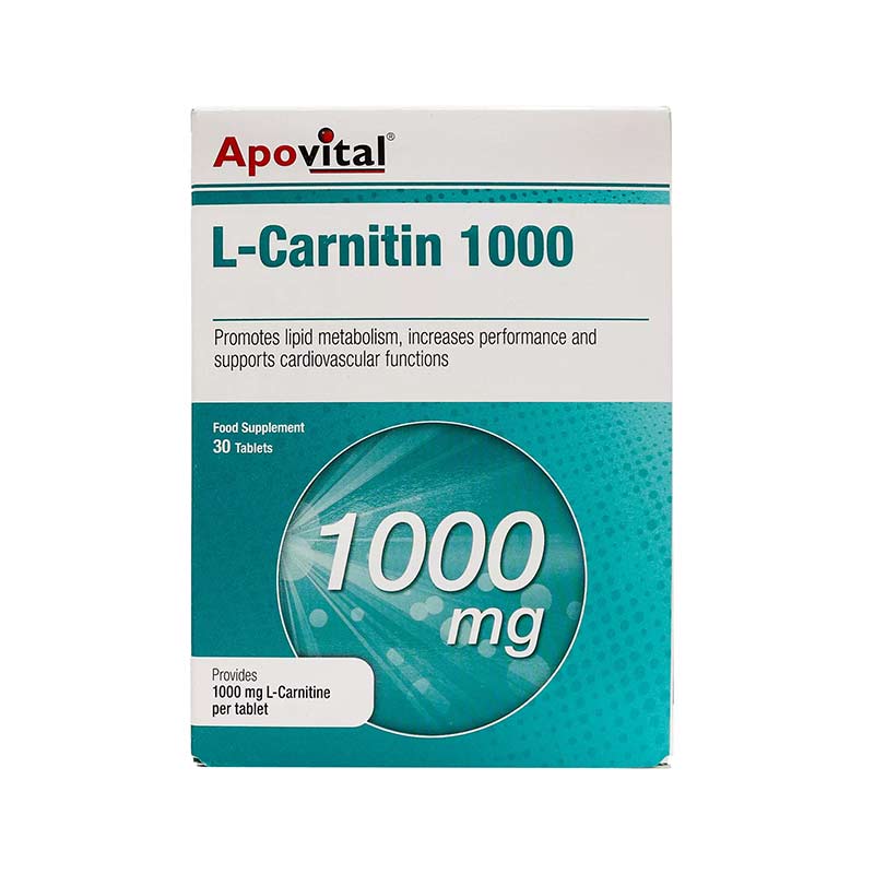 قرص ال کارنیتین 1000 میلی گرم آپوویتال 30 عددی (تاریخ نزدیک) Apovital L Carnitine 1000mg 30 Tablets